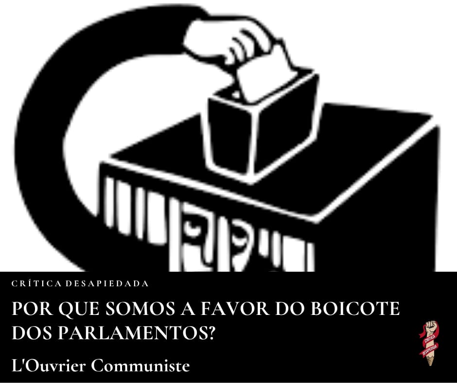 Original in Italian: Perche’ siamo per il boicottagio dei parlamenti / Why do we boycott parliaments? – League of Internationalist Communists / Pourquoi nous sommes pour le boycott des parlements ?